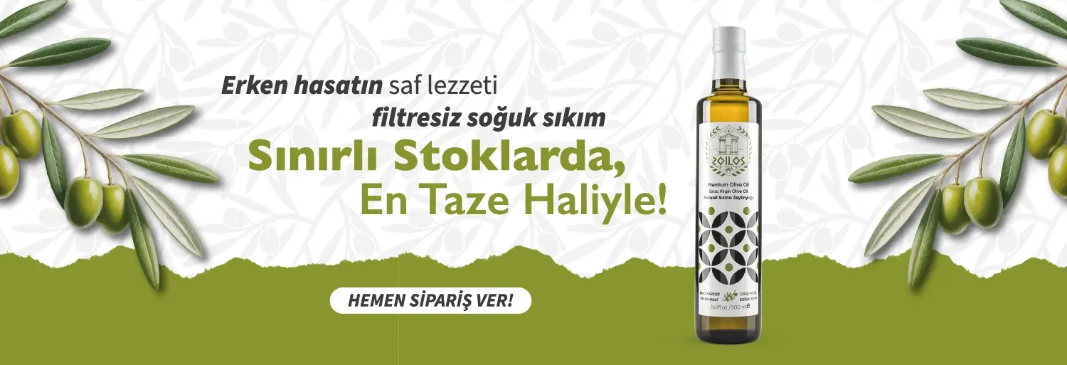 Olgunlaşmamış Yamalak Sarısı cinsi zeytinlerin sıkılması ile elde edilen naturel sızma zeytinyağları salata, meze ve yemeklerinize lezzet katacaktır.